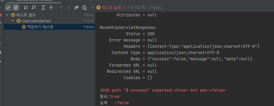위의 과정들을 진행해가며 문제점이 save 자체가 아니라 최근에 변경한 UserResponse로 변환하는 과정에서 error가 발생하는 것으로 판단을 하고 확인을 하기 시작했습니다.